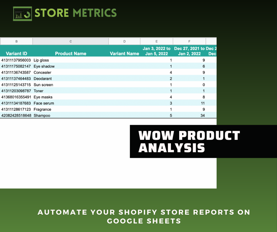 - Monitor your store's KPIs and compare the metrics WoW